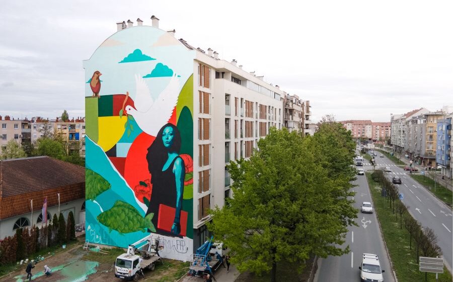 Kolektivni rad impozantnih dimenzija nalazi se u ulici Kornelija Stankovića 44, a kroz inovativne interpretacije sveta podsećaju nas na društveno odgovorne i aktuelne teme, spajajući umetnost i aktivizam.