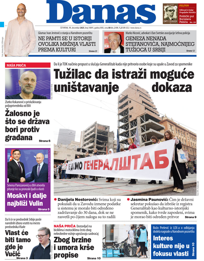 Pratite nas na našoj Facebook i Instagram stranici, ali i na X nalogu. Pretplatite se na PDF izdanje lista Danas.