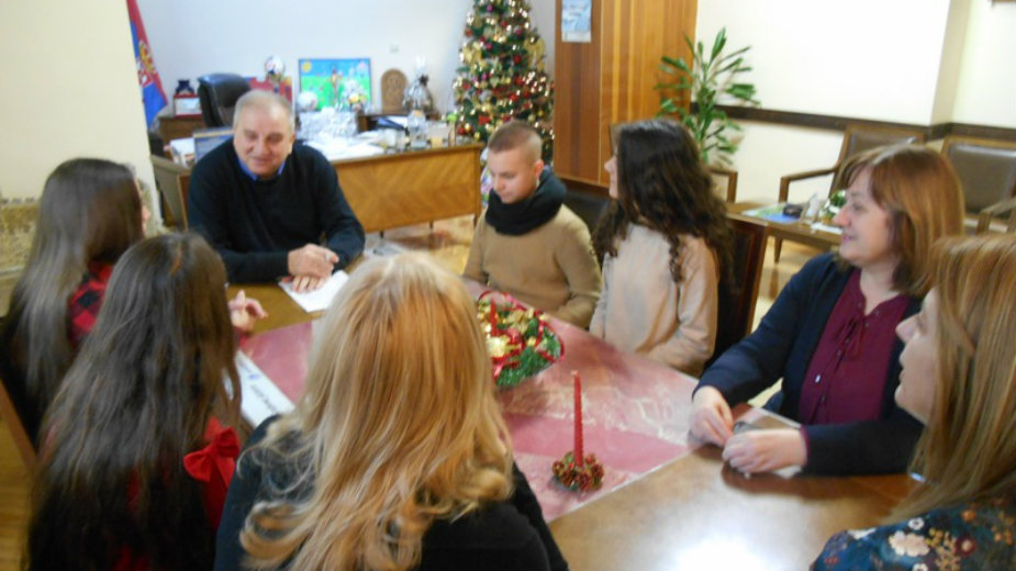 Učenici osnovci Aleksandra Jovanović, Aleksa Mladenović, Anđela Kojić i Nikolija Stokić, došli su u opštinu pratnji svoje direktorke, Brankice Makuljević i pedagoga Ljiljane Mitić, a prijemu je prisustvovao i opštinski prosvetni inspektor, Sanja Stojadinović.
