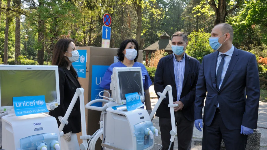 Donacija KBC Bežanijskoj kosi Foto: UNICEFUNICEF je danas isporučio prva četiri od ukupno 50 respiratora nabavljenih za zdravstvene ustanove u Srbiji. Dva respiratora su dostavljena u KBC Bežanijska kosa, a po jedan su dobili Univerzitetska dečja klinika Tiršova i Institut za majku dete.