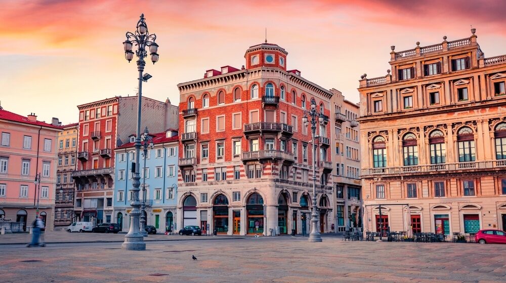 Ona dominira najvećim tršćanskim trgom Ponte roso koji je izašao iz perioda buvlje pijace i blista pod prolećnim suncem okrenut moru.