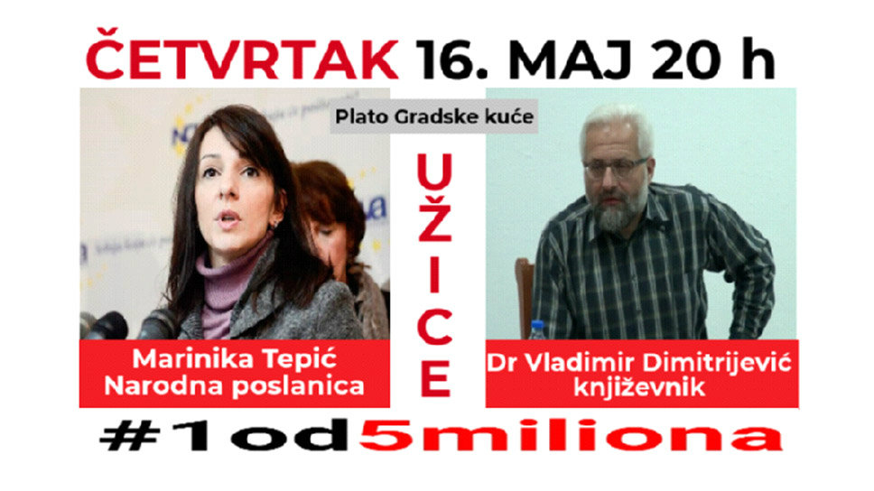 Protest „1 od 5 miliona“ nastavlja se u Užicu, pa je novo okupljanje građana zakazano za četvrtak, 16.maja u 20 časova, ispred Skupštine grada.