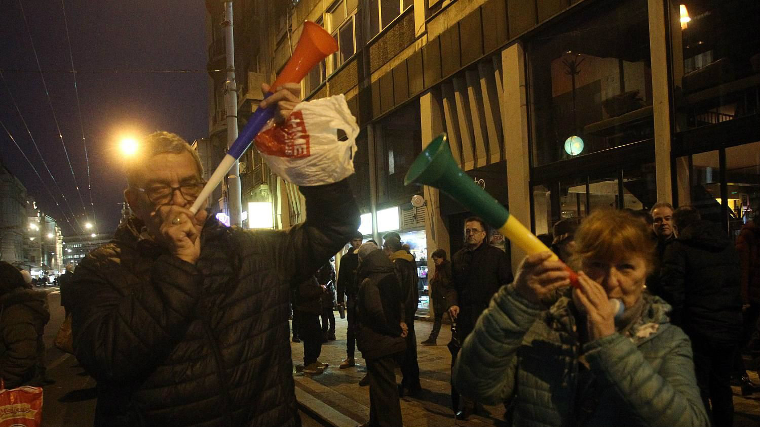 Komentator Pantić pozvao je publiku da ne zviždi himni koja je prema njegovim rečima emitovana u čast rođendana predsednika Vučića. Građni okupljeni u Ulici kralja Milana mahali su uz tu pesmu, dok je Pantić rekao „da se zna i kad i gde“ i poručio „Sledeći rođendan u zatvoru“. Pantić je rekao da nije važno šta se na terenu dešava, već da otkrije svoje podatke, i da u zgradi na Andrićevom vencu 1 od 1990-ih „sedi politička mafija“.