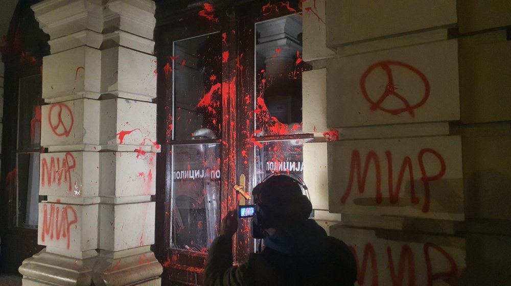 Foto: Aleksandar Latas/ DanasGradski odbornik Miša Bačulov traži od poslanika i odbornika da stanu u prve redove i predaju zahteve, a koji se odnose za ostavke i preuzimanje odgovornost. Pozivaju policiju da otvore vrata i da će biti sve u redu.