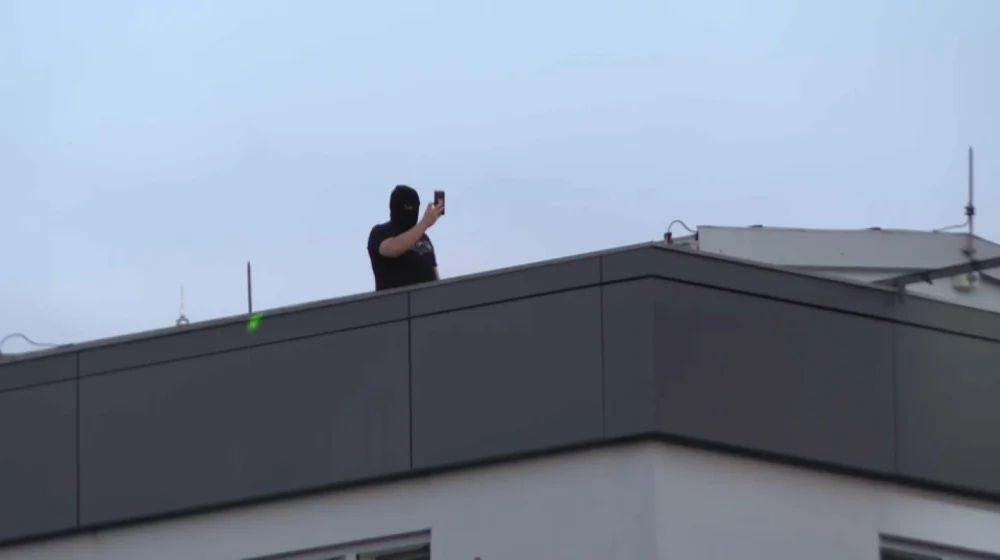 Izvor: N1Grupa osoba sa famtomkama pojavila se danas na krovu zgrade u kojoj se nalazi redakcija „Informera“ tokom protesta na koji su ispred sedišta tog medija pozvali studenti.