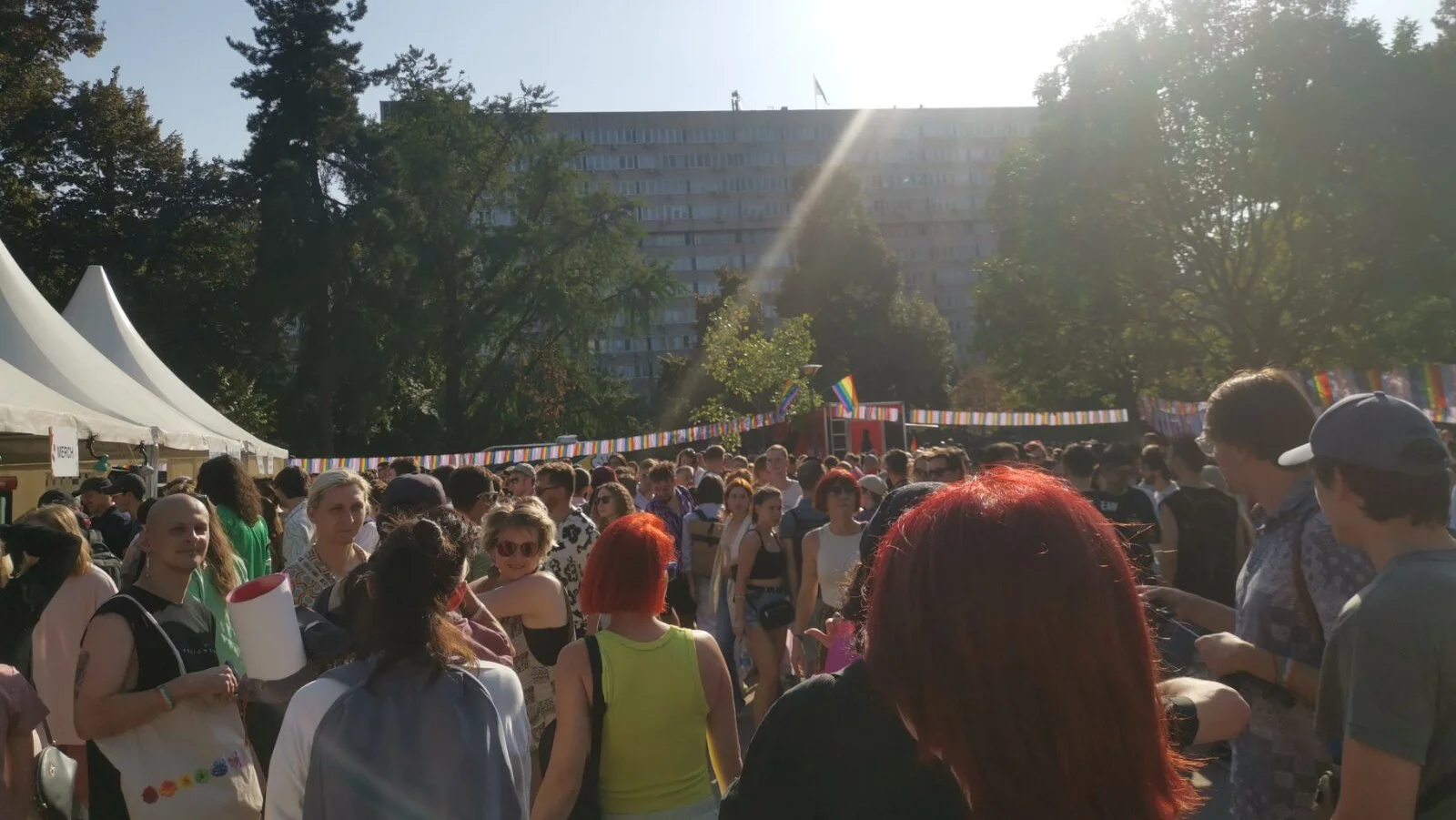 16.35 Građani pristižu u parku Manjež gde jezakazano okupljanje. Okupljeni nose zastave duginih boja kao i druga obeležja LGBT+ zajednice, a neki su ogrnuti i zastavama Srbije. Pre polaska u šetnju, koji je predviđen u 17h očekuju se obraćanja.