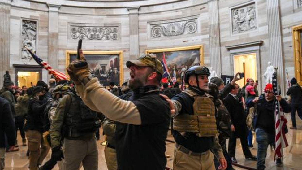 Neki od demonstranata nosili su pancire i borbenu opremu, a pojedini su se tokom upada Kongres peli po zidovima.