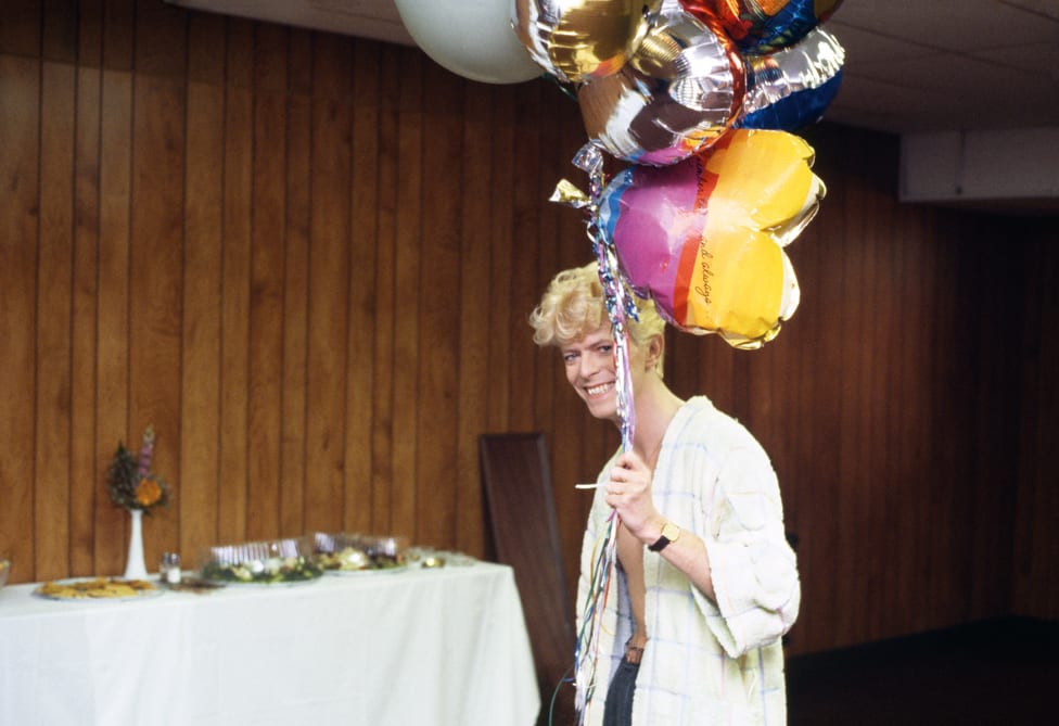 „Ćerka njegove šminkerke je slavila rođendan, pa je Dejvid, dok se spremao za nastup, pokupio balone da ispozira za fotografiju. Slika pokazuje koliko je bio opušten pred mojom kamerom i koliko je voleo da se smeje, a naročito sam sebi. Kada sam ga upoznao iznenadio sam se koliko zapravo uopšte nije ličio na onu ledenu ulogu koju je igrao na svojoj prethodnoj turneji 1978. godine, kao Thin White Duke.“