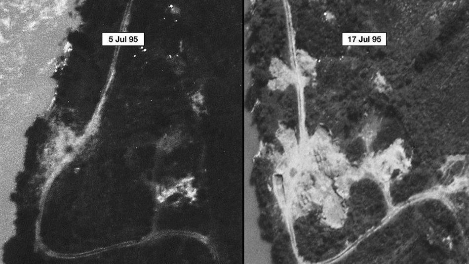 Fotografije satelitskih snimaka preuzete su iz dokaznog predmeta P02103 sa suđenja Vujadinu Popoviću i drugima pred MKSJ i ustupljene su ljubaznošću Programa Mehanizma za informisanje zajednica pogođenih sukobima.