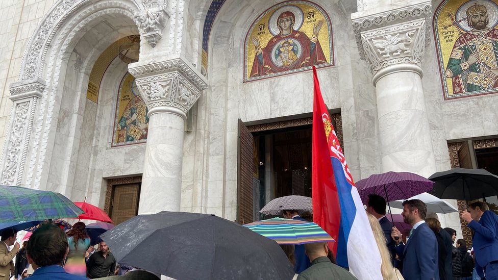 Dok su se učesnici Evroprajda grupisali pred polazak u šetnju niz Bulevar kralja Aleksandra, sa crkve svetog Marka začula su se zvona.