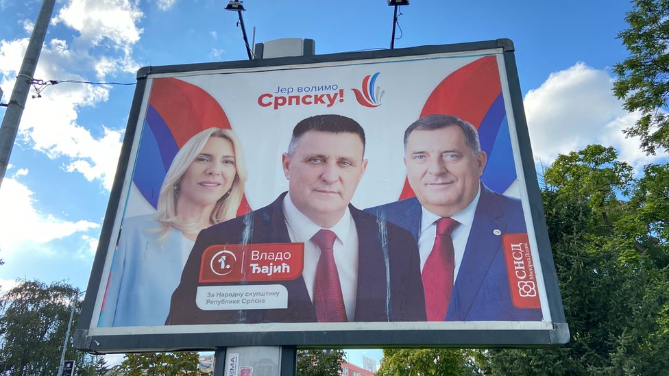 Ovog puta je favorit u trci za predsednika Milorad Dodik, dugogodišnji lider Srba iz Republike Srpske, koji se osmehuje i sa bilborda postavljenih u gradovima u Srbiji.