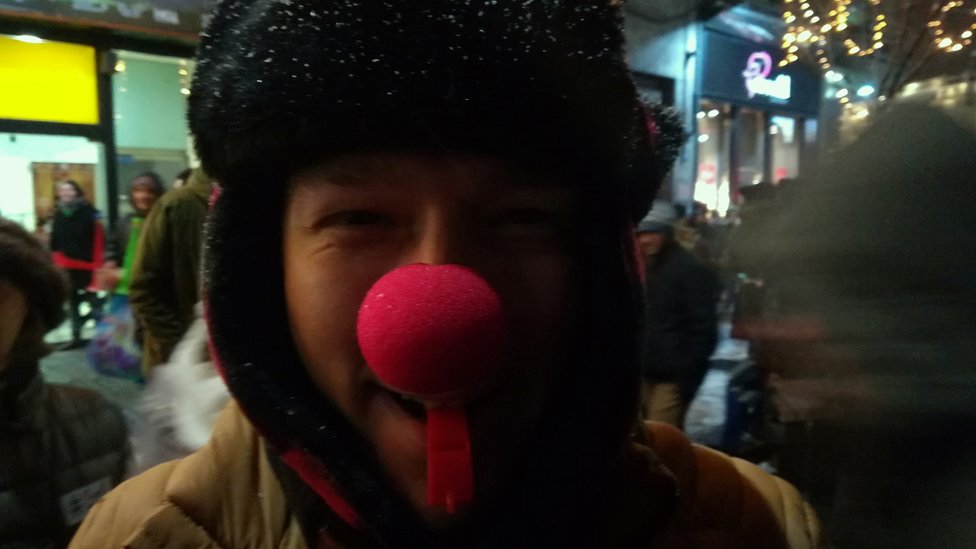 Među demonstrantima je bilo pasa, male dece i ljudi u kolicima, dok se nekoliko ljudi šetalo po masi prodajući pištaljke i bedževe, kao i lutke sa likom predsednika Aleksandra Vučića.