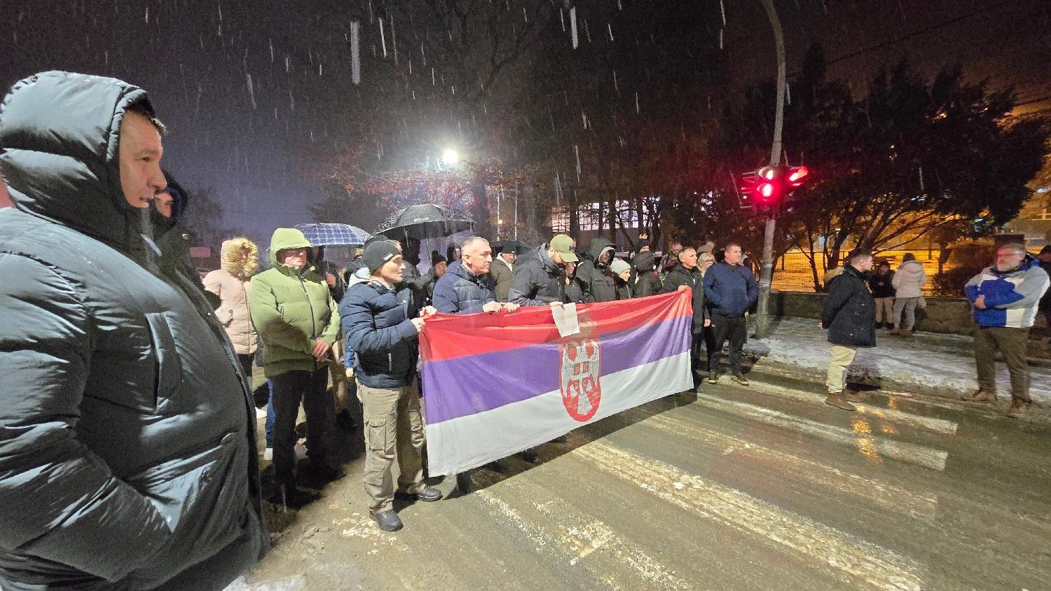 Oni su stajali u tišini, držeći raširenu zastavu Srbije, javila je agencija Fonet.