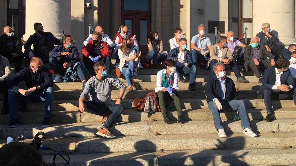 Lider Dveri Boško Obradović u subotu je Čačku protestovao u vreme policijskog časa – uz nekoliko odbornika i pristalica Dveri šetao se centralnim ulicama grada, skandirajući protiv predsednika Vučića.