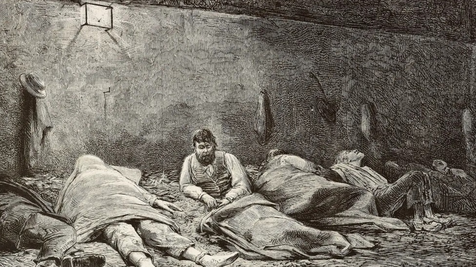 (Na dnu društvene lestvice, ljudi bi morali da se zadovolje time da se ugnezde na komadima vreska ili, još gore, na golom zemljanom podu – možda čak i bez ćebeta.)