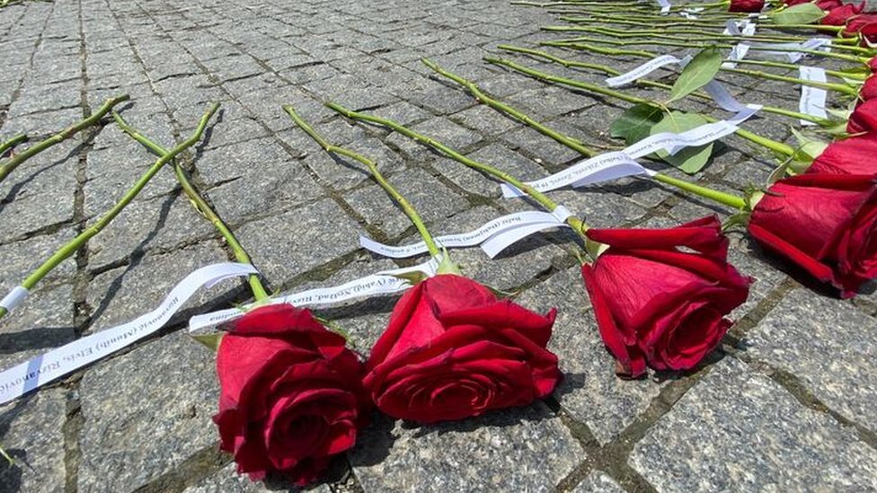 Sa razglasa su pročitana imena 102 ubijene dece, a na trg su položene ruže sa njihovim imenima.