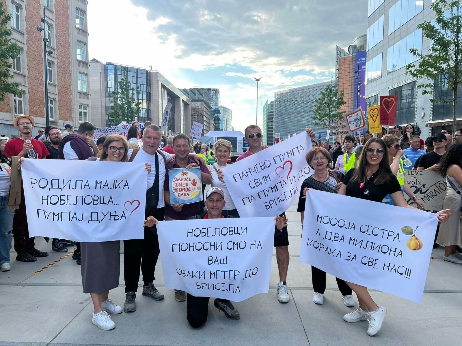 Posle 18 dana trčanja – na smenu – studenti maratonci iz Srbije stigli su u Brisel gde su razgovarali sa evropskim poslanicima o društveno-političkom stanju u Srbiji, a izvestilac za Srbiju Tonino Picula izjavio je da će „ovi mladi ljudi definisati budućnost“ zemlje.