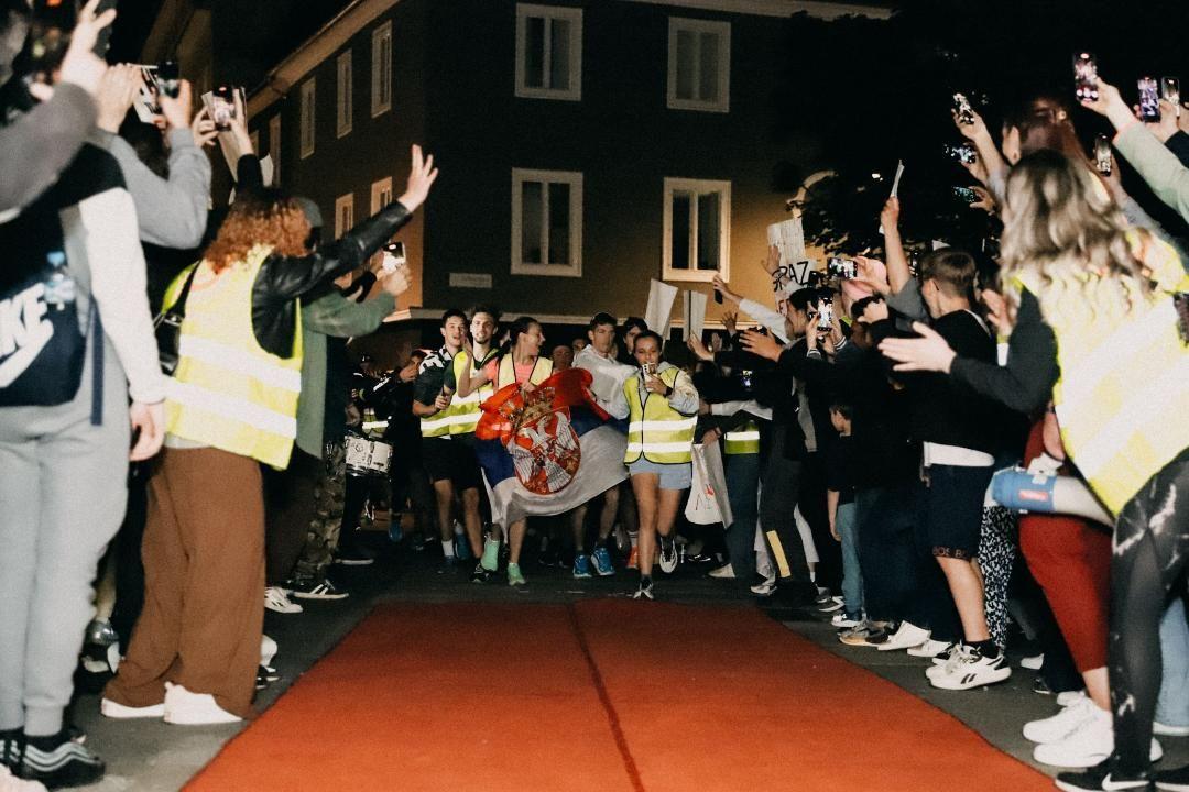 Zapevali su i himnu Srbije, uz pratnju violine koju je svirao jedan od trkača.