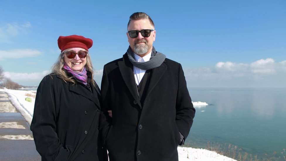 Ovaj par žarko želi da predstavi svoj kraj, ali po ovako hladnom vremenu, veći deo reke još je smrznut i ima svetlucavu glazuru.