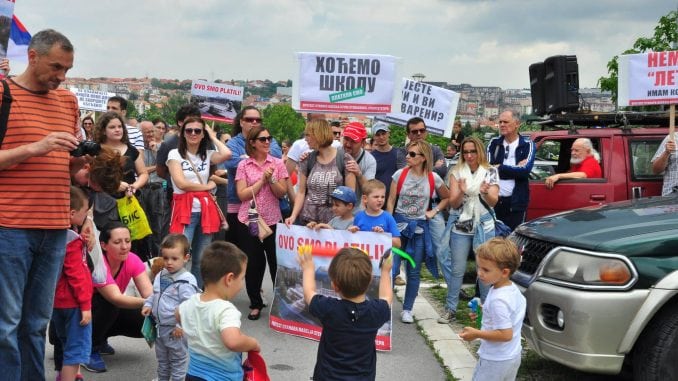 Foto: FB/Naselje Stepa StepanovicStanari beogradskog naselja „Stepa Stepanović“ danas su se simboličnim protestom ponovo usprotivili nameri SPC da gradi crkvu na jednoj od parcela u tom naselju.