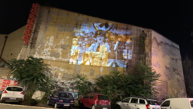 Foto: Ne davimo BeogradLokalna grupa inicijative Ne davimo Beograd sa Voždovca organizovala je projekciju filma „Veliki diktator“ na zidu odavno zatvorenog bioskopa Voždovac sa željom da ukaže na nedostatak kulturnih sadržaja i objekata kulture na ovoj velikoj beogradskoj opštini.
