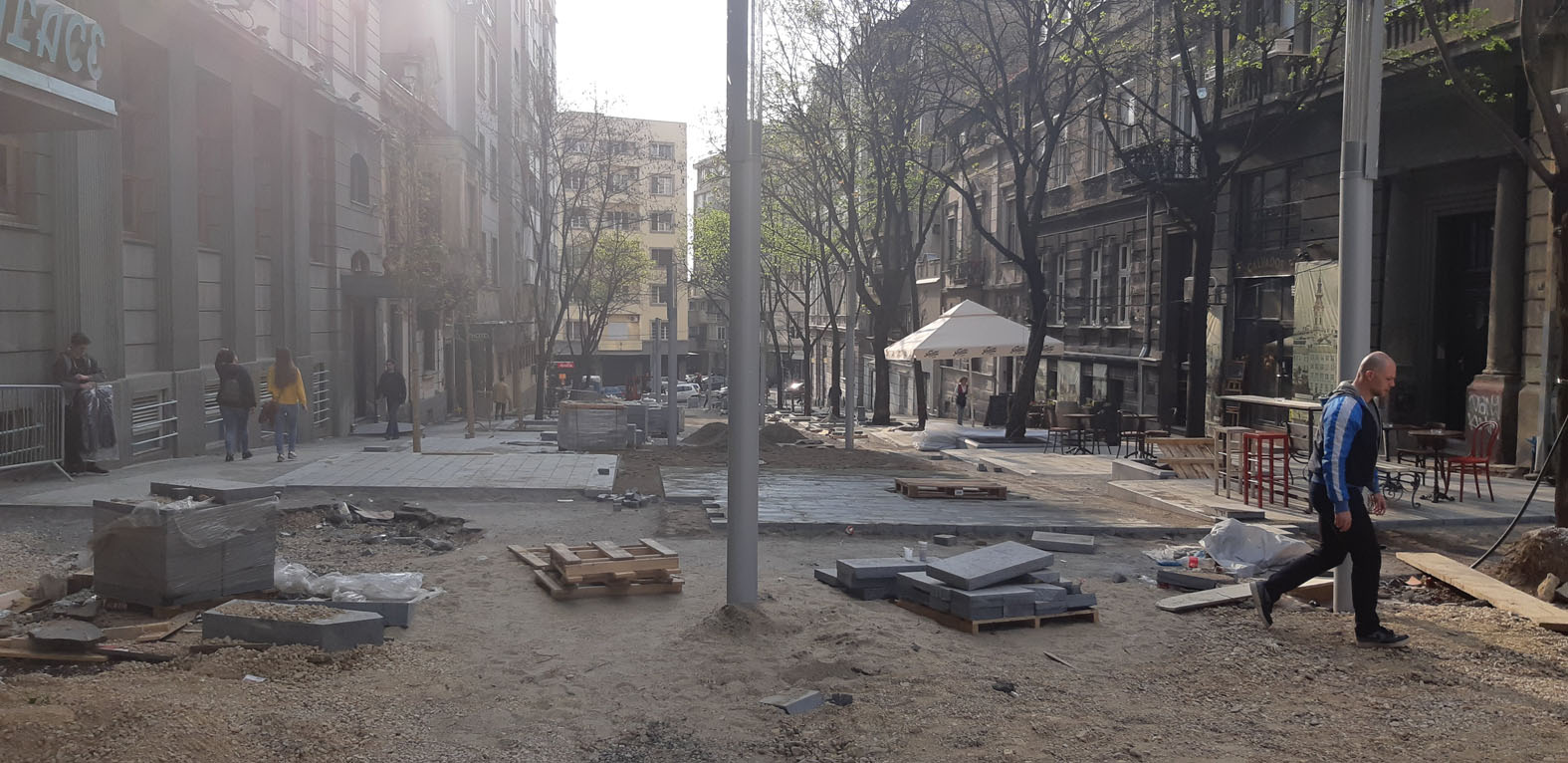 Sa malo zakašnjenja, završetkom popločavanja Trga republike, zatvaranjem Vasine ulice za saobraćaj, i izmenama trolejbuskog i autobuskog saobraćaja, u aprilu se nastavljaju radovi na novoj pešačkoj zoni koja će se prostirati gradskim jezgrom.