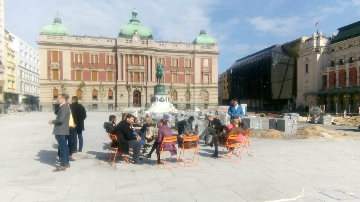 Ovo je četvrti put da građani, koji se protive pretvaranju najužeg centra grada u pešačku zonu, zajedno sa predstavnicima opštine Stari grad organizuju blokadu radova na Trgu republike. Prve blokade organizovane su 9. aprila, a zahtevi su ostali nepromenjeni.