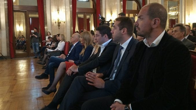 Foto: BeoinfoGradonačelnik Beograda Zoran Radojičić prisustvovao je danas promociji nacionalnog modela dualnog i preduzetničkog obrazovanja zajedno sa ministrom prosvete, nauke i tehnološkog razvoja Mladenom Šarčevićem, članom Gradskog veća Dragomirom Petronijevićem i sekretarom za obrazovanje i dečju zaštitu Slavkom Gakom u Starom dvoru.