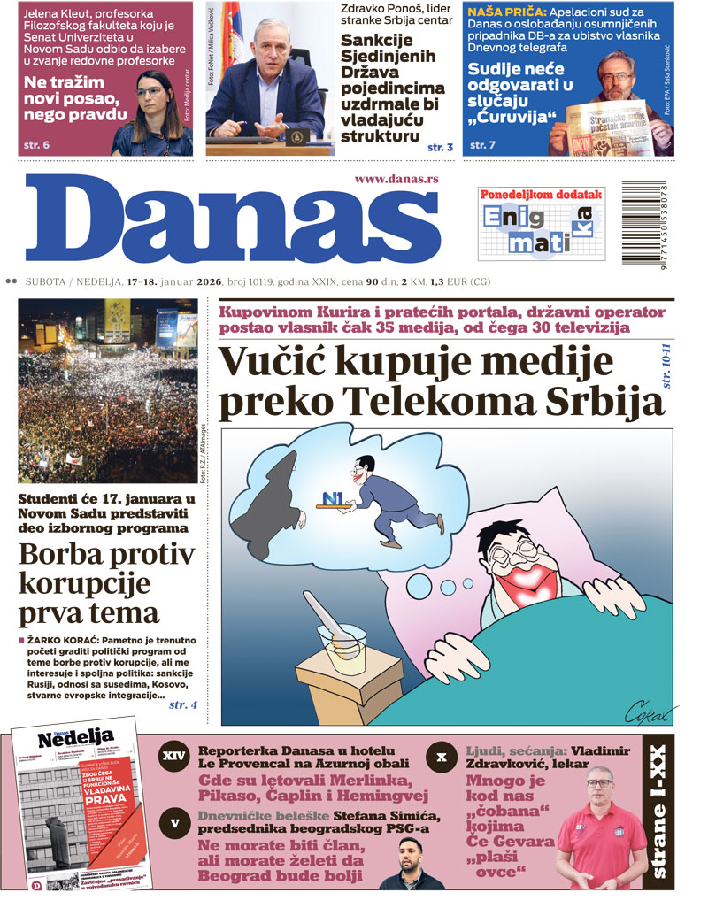Pratite nas na našoj Facebook i Instagram stranici, ali i na X nalogu. Pretplatite se na PDF izdanje lista Danas.