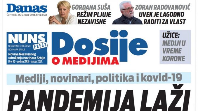 Specijalni dodatak lista Danas i Nezavisnog udruženja novinara Srbije „Dosije o medijima“.