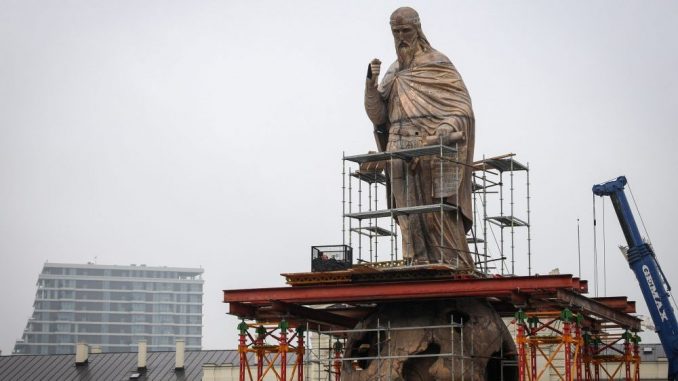 Foto: Stefan Tomasevic/ATAImagesRuski vajar Aleksandar Rukavišnjikov, autor spomenika Stefanu Nemanji, odbacio je danas za Sputnjik spekulacije da je krst u ruci rodonačelnika srpske države u poslednjem trenutku zamenjen mačem.