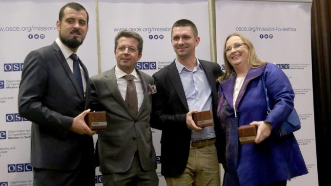 Foto: Ognjen StevanovićIzvršnom direktoru i glavnom i odgovornom uredniku portala lista Danas Bojanu Cvejiću Misija OEBS u Srbiji uručila je jedno od priznanja „Ličnost godine“.