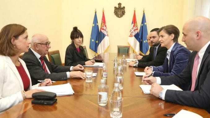 Foto: FoNet/Vlada SrbijePredsednica Vlade Srbije Ana Brnabić apelovala je danas, u razgovoru sa predsednikom Mehanizma za međunarodne krivične tribunale Teodorom Meronom, da se učini sve kako bi se poboljšao tretman srpskih zatvorenika koji izdržavaju kazne po presudi Tribunala.