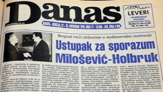 „Jugoslavija će početkom sledeće godine izvršiti pritisak za prijem u međunarodne finansijske institucije, jer je ispunila sve uslove za ukidanje ekonomskih sankcija, izjavili su jugoslovenski zvaničnici i bankari. Izvori agencije Rojters tvrde da je sporazumom Milošević-Holbruk omogućen pristup vlasti u Beogradu Međunarodnom monetarnom fondu i drugim institucijama. Nameravajući da podrži taj zahtev, vlada, koja je ostala bez svežeg novca’, zatražila je uključenje u međunarodne finansijske tokove i taj zahtev obrazložila sopstvenom potrebom za ‘depolitizovanim društvom i tržišnim reformama’“, tvrdio je Rojters.