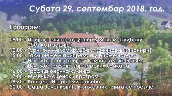Foto: PlakatU subotu, 29.09.2018. biće održani 3. Dani Gamzigradske banje.