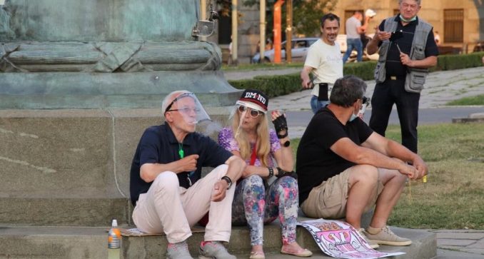 Sve manji broj učesnika iz večeri u veče, čini se, jedina je novost ispred skupštine. Sve ostalo je isto: pristalice Srdjana Noga skupljale su se i razgovarale kod levog jarbola, Saša Radulović bez maske okružen pristalicama od kojih većina nije nosila masku govorio je o raspadu Evropske unije, muškarci i žene koji su stajali u blizini raščinjenog monaha Antonija pojali su crkvene pesme, ispod srpske i ruske zastave sastavljene u jednu.