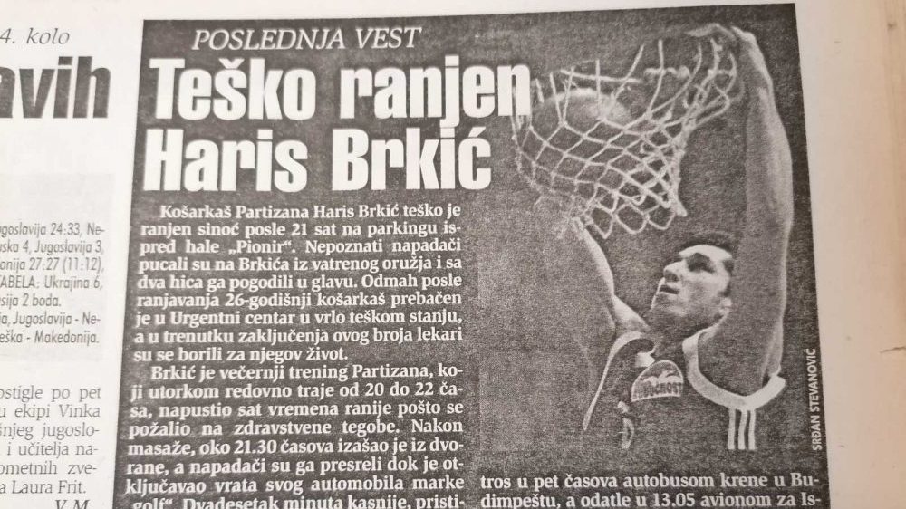 „Košarkaš Haris Brkić teško je ranjen sinoć posle 21 sat na parkingu ispred hale ‘Pionir’. Nepoznati napadači pucali su na Brkića iz vatrenog oružja i sa dva hica ga pogodili u glavu. Odmah posle ranjavanja 26-godišnji košarkaš prebačen je u Urgentni centar u vrlo teškom stanju, a u trenutku zaključenja ovog broja lekari su se borili za njegov život“, glasila je inicijalna informacija o strašnom događaju u širem centru Beograda u tekstu na stranicama Danasa.