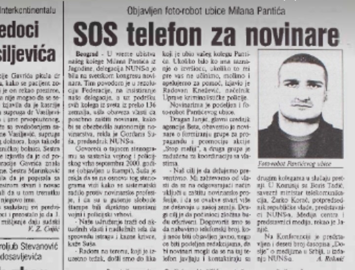Na konferenciji za medije Nezavisnog udruženja novinara Srbije krajem proleća 2001. godine pokazan je foto-robot potencijalnog ubice surovo likvidiranog dopisnika Večernjih novosti iz Jagodine, što je trebalo da ubrza privođenje pravdi osobe koja je „udarcima tupim predmetom u glavu“ oduzela život Milanu Pantiću u osam sati ujutro u ulazu zgrade u kojoj je nesrećni novinar živeo.