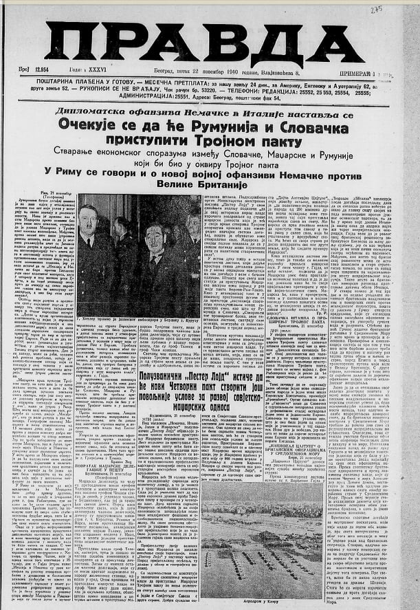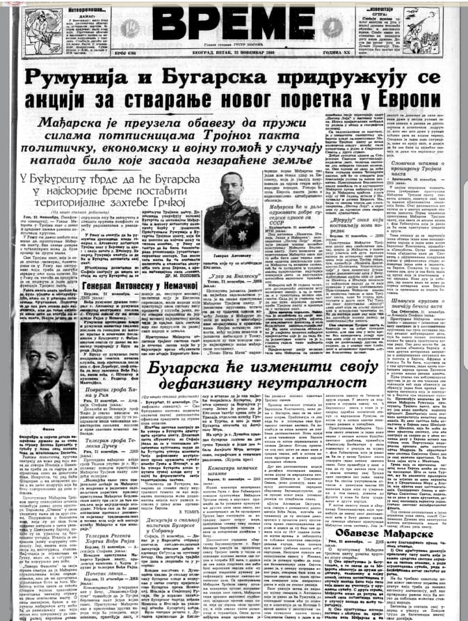 Foto: Matea Milošević/Univerzitetska biblioteka "Svetozar Marković"Na današnji dan, pre tačno 80. godina za list Pravda govorio je Brana Dimitrijević, fudbaler „Jugoslavije“. Redakciju lista „Vreme“ posetio je japanski „leteći reporter“.