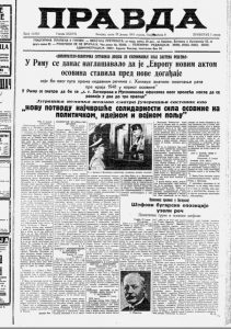 Foto: Matea Milošević / Univerzitetska biblioteka Svetozar MarkovićListe Vreme je na današnji dan pre 80 godina pisao o tome kako izgleda posao novinara u jednom dnevnom listu, dok je List Pravda objavio priču o snimanju filma o udesima na plavom Dunavu.