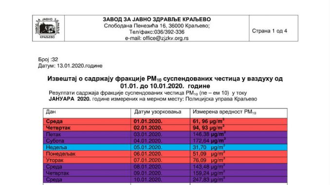 Na jedno od njegovih pitanja o tome „da li se javnost redovno i potpuno informiše o trenutnom stanju, odnosno da li se građanima pruža dovoljno podataka o vrsti i obimu informacija o izmerenim vrednostima, njihovom značaju, kao i o uticaju koje izmerene vrednosti zagađujućih materija mogu imati na njihovo zdravlje“ možemo na primeru Kraljeva da odgovorimo odmah, i bez Ministarstva.
