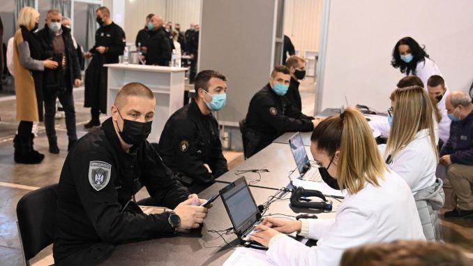 Foto: MUPViše od 500 pripadnika Ministarstva unutrašnjih poslova iz Policijske uprave za grad Beograd i organizacionih jedinica MUP-a, u okviru masovne imunizacije, vakcinisalo se danas na Beogradskom sajmu.