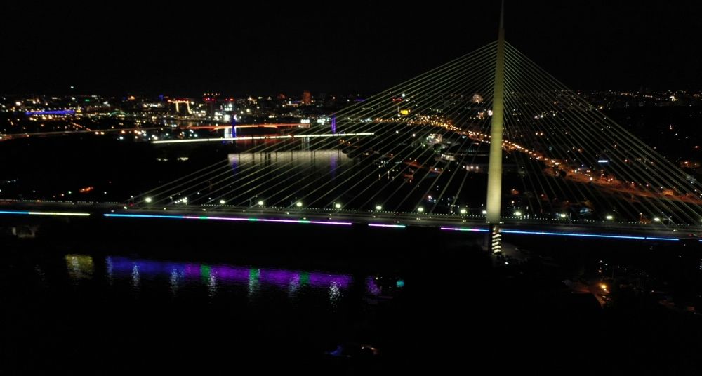 Most na Adi, Brankov most, Palata Albanija, Trg Slavija, svetleli su ovim bojama i skretali pažnju prolaznika i posmatrača.