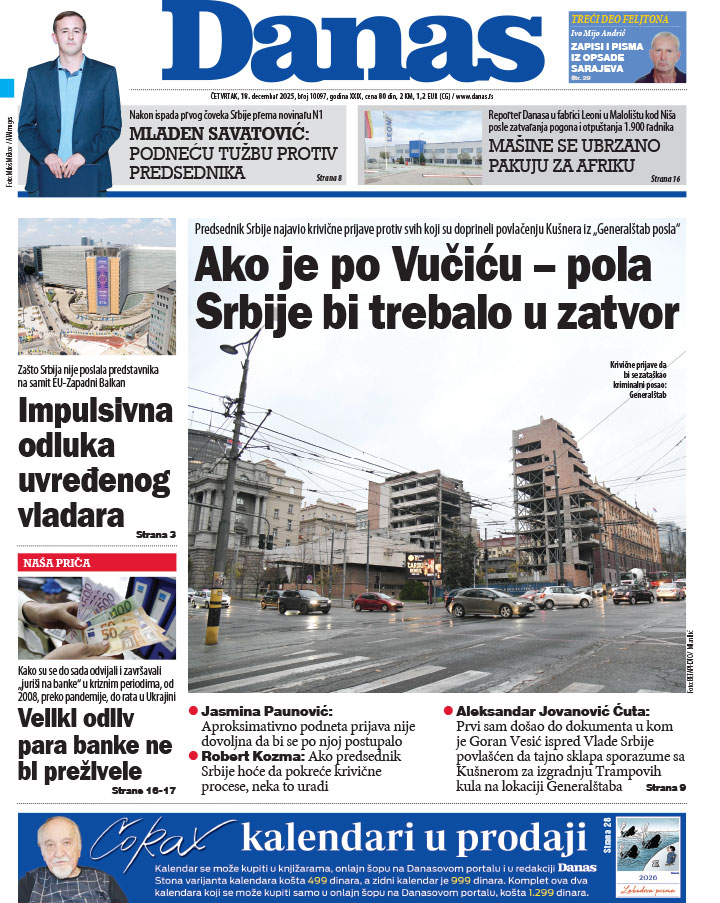 Pratite nas na našoj Facebook i Instagram stranici, ali i na X nalogu. Pretplatite se na PDF izdanje lista Danas.