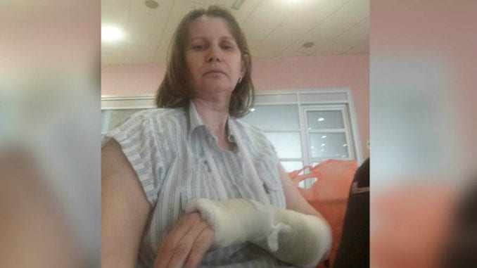 Foto: N1Slobodanki Ninić slomljena je ruka prilikom intervencije policije tokom prinudne deložacije iz stana u ulici Modene 1 u Novom Sadu.
