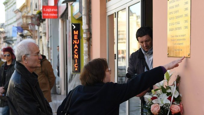Foto: Beta/Dragan GojićPorodice i prijatelji osmoro mladih ljudi koji su stradali u požaru u novosadskom kafiću „Laundž“ obeležili su danas 12. godišnjicu te nesreće polaganjem cveća ispred spomen-ploče u centru grada.