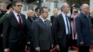 Foto: FoNet/Ognjen StevanovićU Beogradu kod Spomen-kosturnicu branilaca Beograda u Prvom svetskom ratu na Novom groblju danas je održana centralna ceremonija obeležavanja Dana primirja u Prvom svetskom ratu.