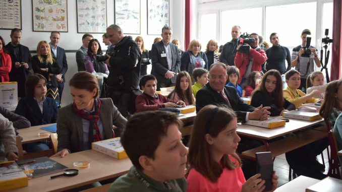 Foto: Ministarstvo prosvete i naukePredsednica Vlade Srbije Ana Brnabić izjavila je danas, na predstavljanju digitalnog udžbenika iz biologije za peti razred osnovne škole, da ove godine sve osnovne škole treba da budu povezane na brzi Internet.
