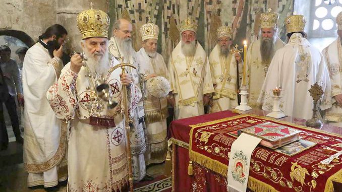 Foto: SPC– Svetom arhijerejskom liturgijom i prizivom Svetog Duha danas je u crkvi Svetih Apostola u manastiru Pećka patrijaršija počelo prolećno zasedanje Svetog arhijerejskog sabora SPC.