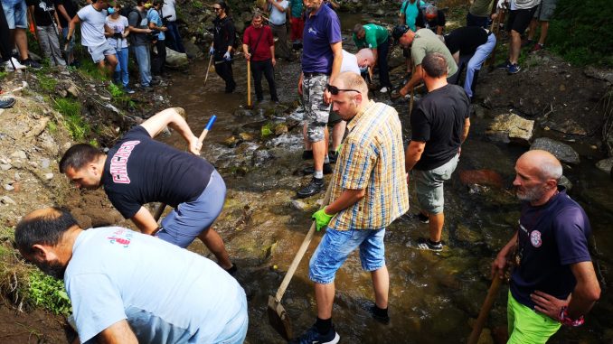 Foto: Danijel KopNekoliko stotina aktivista Pokreta ‘’Odbranimo reke Stare planine’’(ORSP) ali i drugih ekoloških organizacija iz Srbije danas su u selu Rakita u opštini Babušnica organizovali iskopavanje i uklanjanje cevovoda MHE Zvonce iz Rakitske reke u ovom selu.